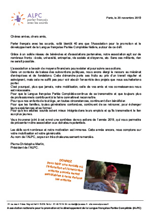 Lettre du Président de l’ALPC, Pierre-Christophe MERLIN :