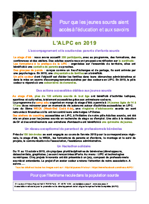 Télécharger la synthèse de nos actions de l’année 2019, qui vous permettra de présenter notre association aux donateurs potentiels :